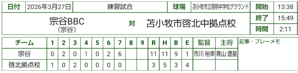 この時期にグラウンドで試合を出来るのは大変ありがたいことですので、お相手くださいました苫小牧啓北中学校様に感謝です。誠にありがとうございました。