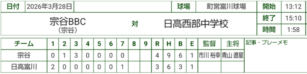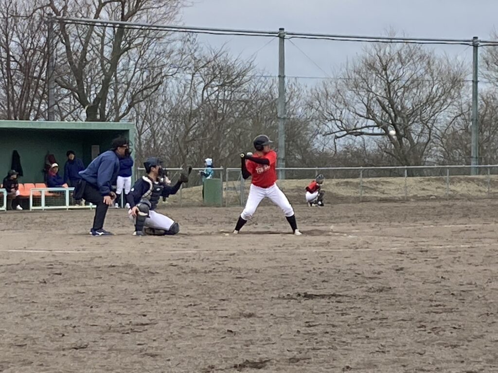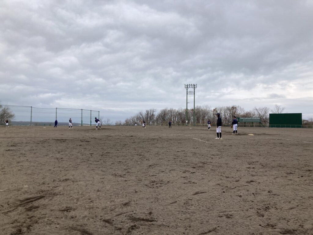 春の道内遠征2日目は、富川町営球場にて北広島東部中学校さんと日高西部富川ベースボールクラブさんと練習試合をさせていただきました。